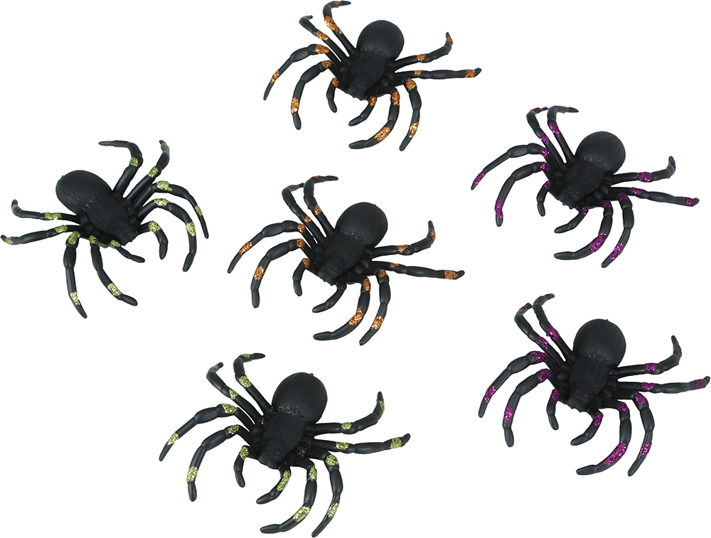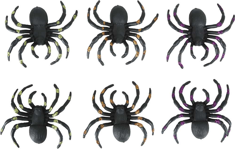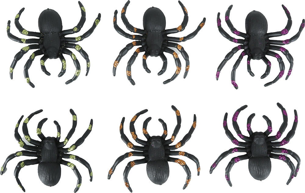 Pack of 6 Halloween Spiders With Glitter 7cm