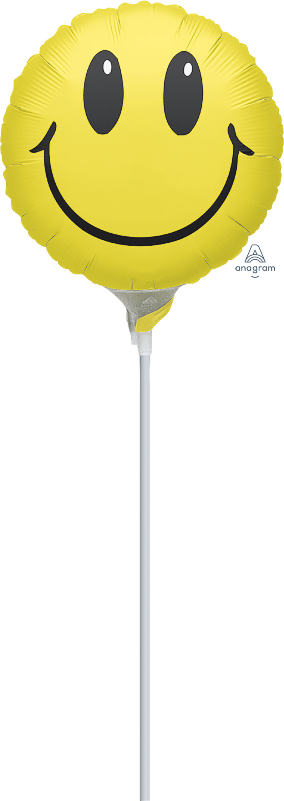 Mini Air-Filled Smile 23cm Foil Balloon + Stick