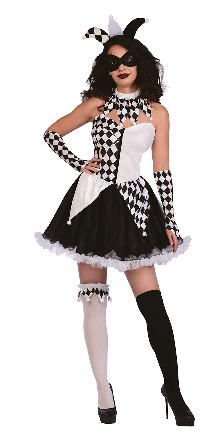 This Costume Includes: Dress, choker, headpiece, gloves, eye mask, garter