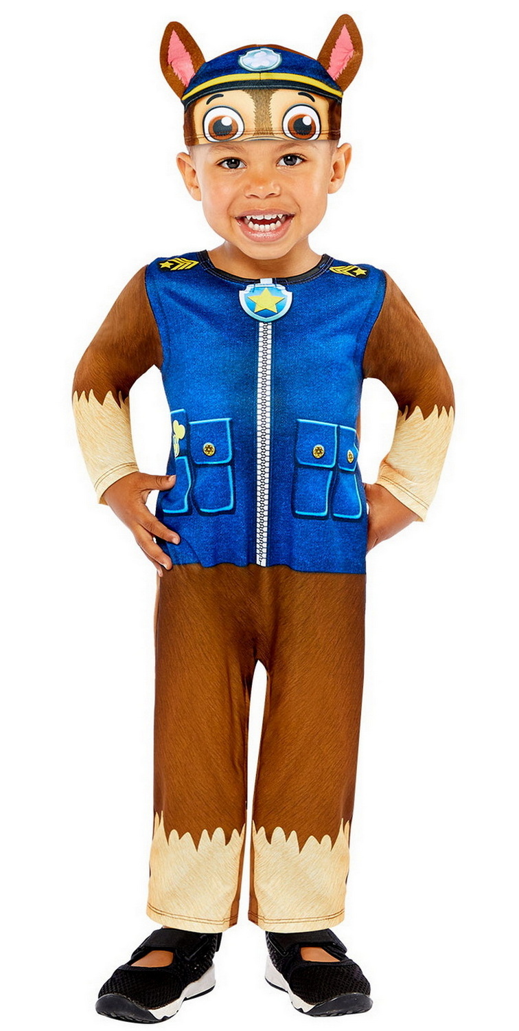 Dress your little hero as Chase from Paw Patrol with this official licensed baby costume. Perfect for ages 18 to 24 months, it features vibrant colors and authentic details for endless fun and imaginative play. Soft, comfortable fabric ensures your toddler stays happy while on the go.