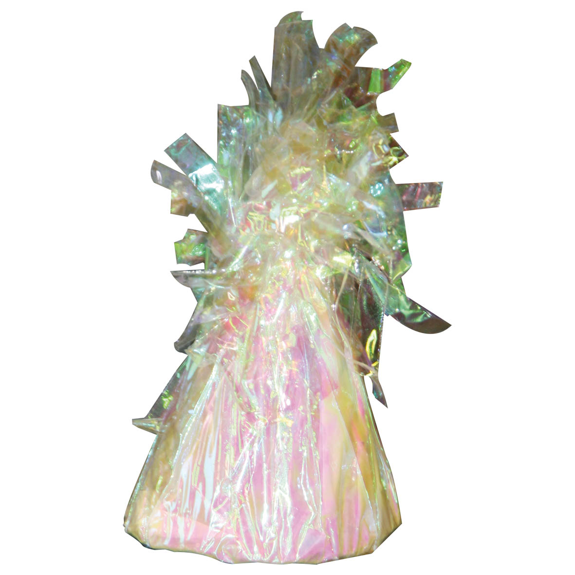 Balloon Weight Iridescent – 170 g. Contents: 1 Balloon Weight. Colour: White. You can use this article for the following party occasion(s): Birthday, Children’s party. Dimensions of this article: 14 cm x 6 cm. The article is made of foil.