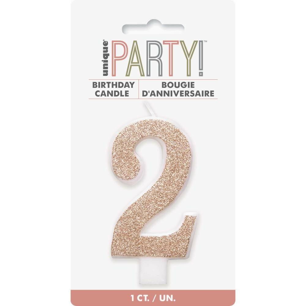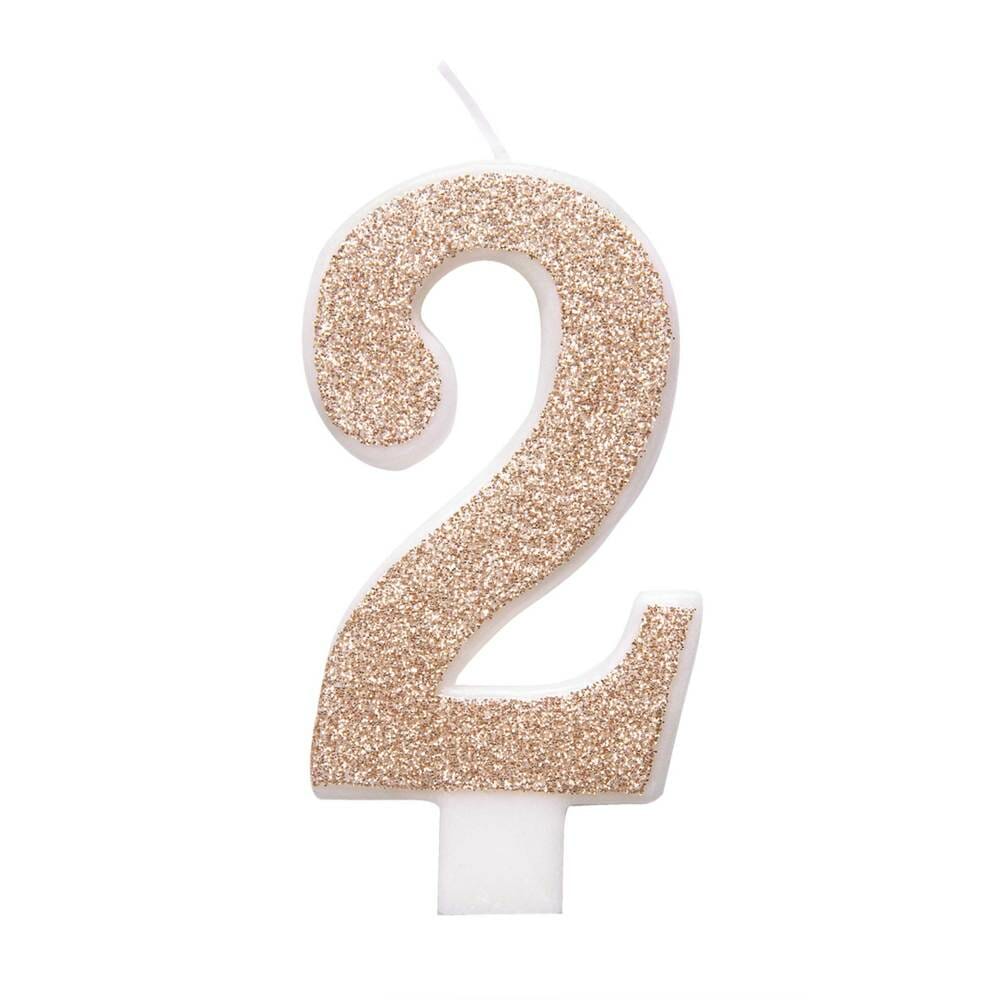 Birthday Rose Gold Glitz Glitter Number 2 Birthday Candle