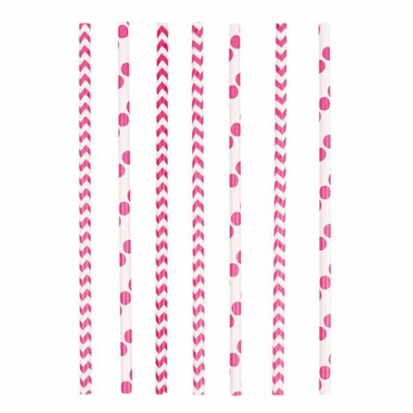 Bright Pink Dots & Chevron Paper Straws 19.5 cm – 24pk