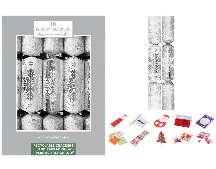 Christmas Crackers Luxury Silver & White Design 35cm – 10pk