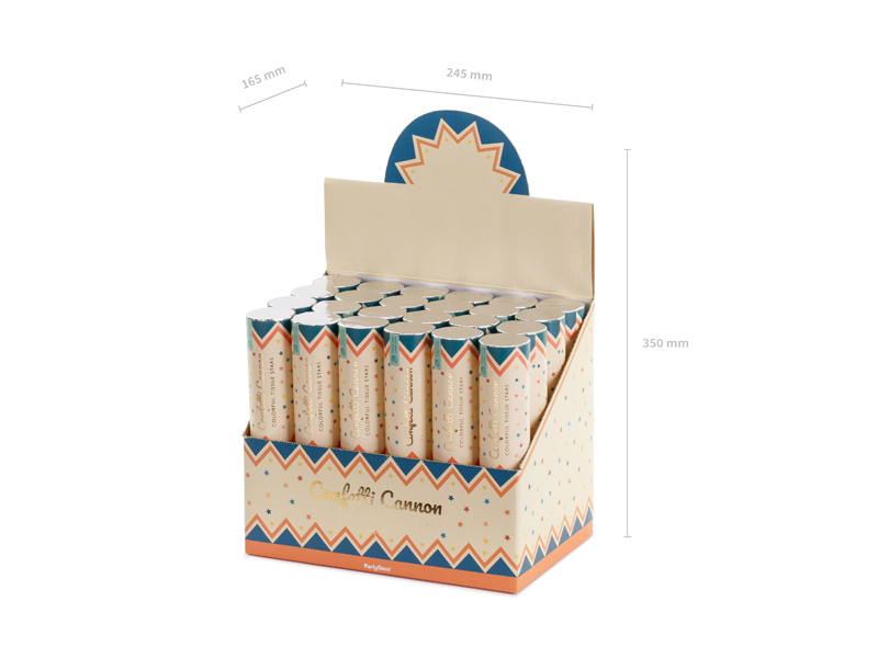 Circus-themed confetti cannon, shoots colorful confetti, 20 cm long.