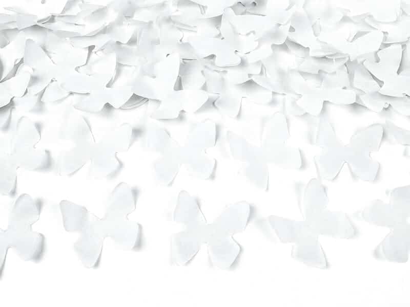 Confetti cannon shooting out white butterflies, length 40 centimiters.