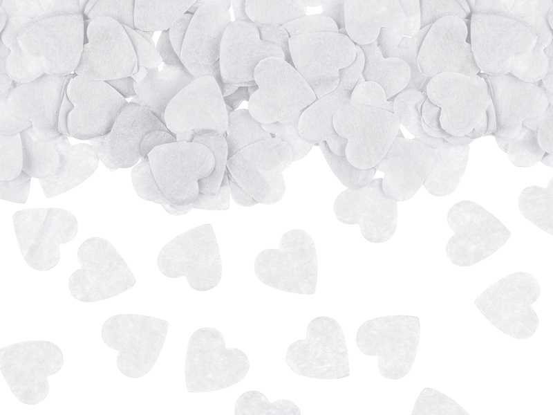 Tissue-paper confetti in white colour, size approx. 1,6 x 1,6 cm, the package contains approx. 15 g of the product.
