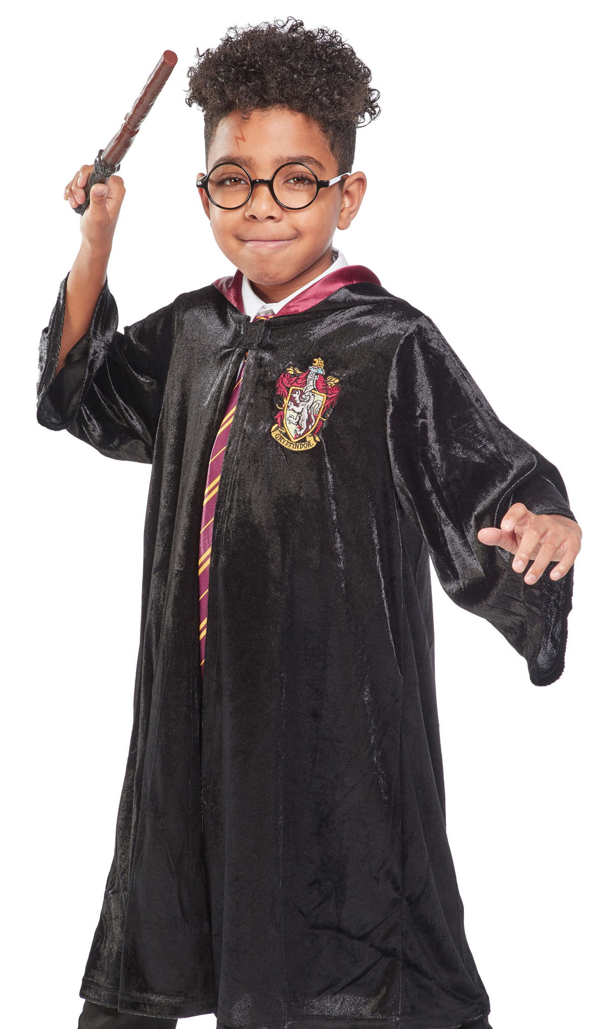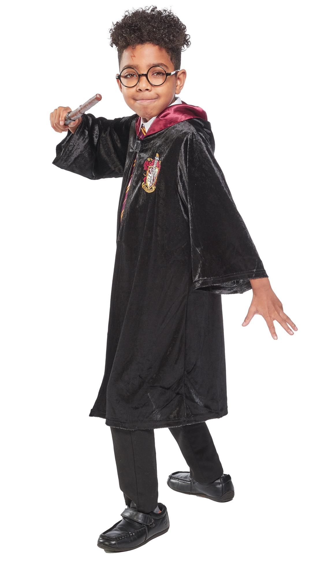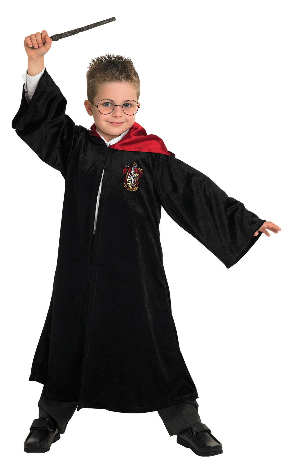 Includes: Deluxe black robe with printed Gryffindor badge, hood and brooch – Size Chart – UK Size