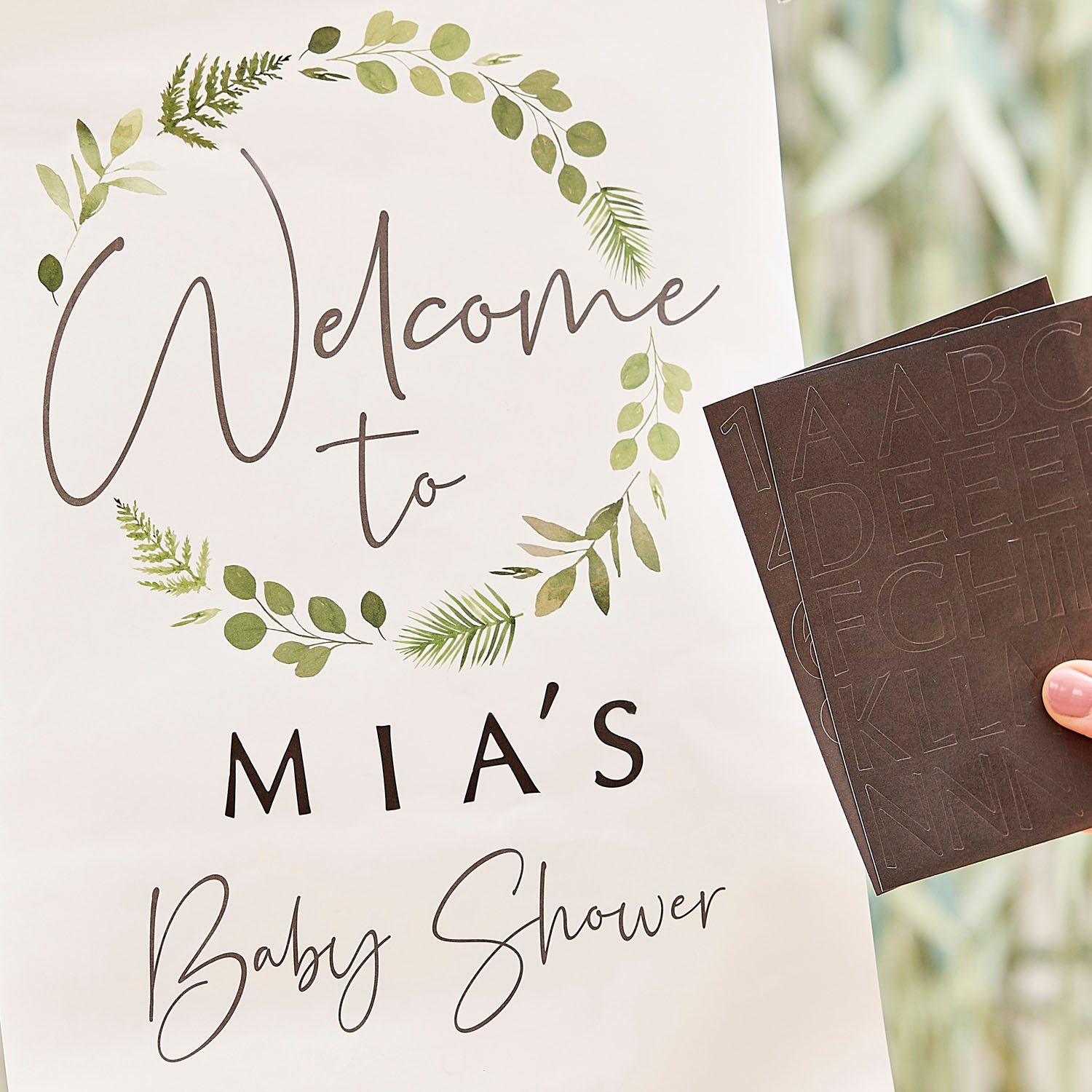 This personalised baby shower welcome sign is a great way to make your baby shower decorations truly one of a kind. Simply use the stickers provided to customise your baby shower welcome sign however you like!