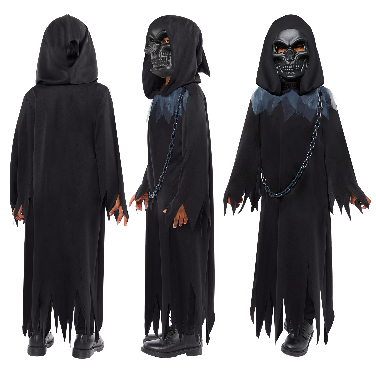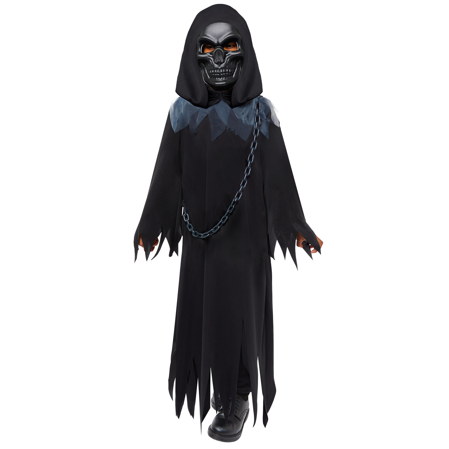 Time for your little one to claim souls in the hooded robe with chain decoration and chilling mask. A perfect Halloween costume, we’re sure he’ll hear plenty of screams and shrieks of terror whilst trick or treating!