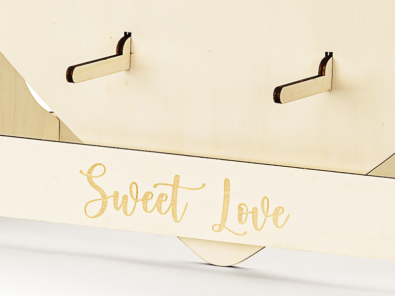 Wooden Donut Wall Heart with 18 hooks for self-assambly, width aprox. 65 cm, height aprox. 59 cm.