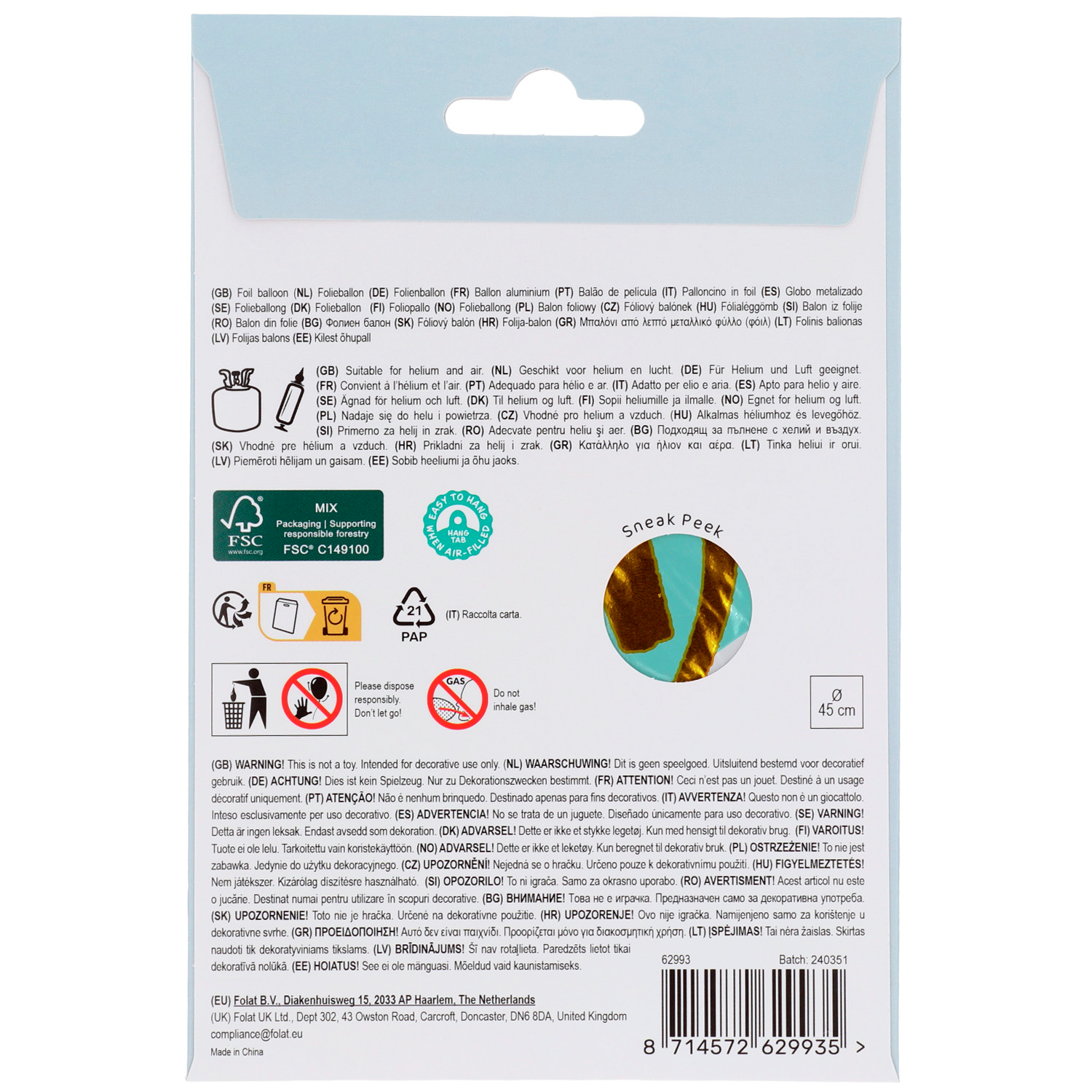 Foil Balloon ‘Baby Boy’ Stripes Blue – 45cm. Contents: 1 Foil Balloon. Colour: Blue. You can use this article for the following party occasion(s): Birth Boy, Baby Shower. The foil balloon is 18 inch/45 cm. The article is made of foil.