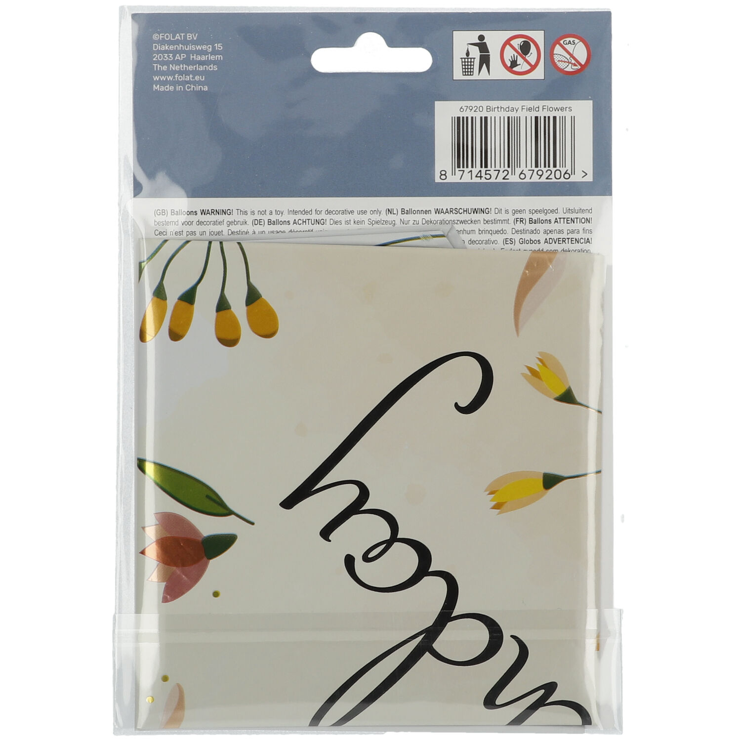 Foil Balloon Birthday Flower Field – 45 cm. Contents: 1 foil balloon. Colour: Multicolour. You can use this article for the following party occasion(s): Birthday and Children’s party. The foil balloon is 18 inch/45 cm. The article is made of foil.