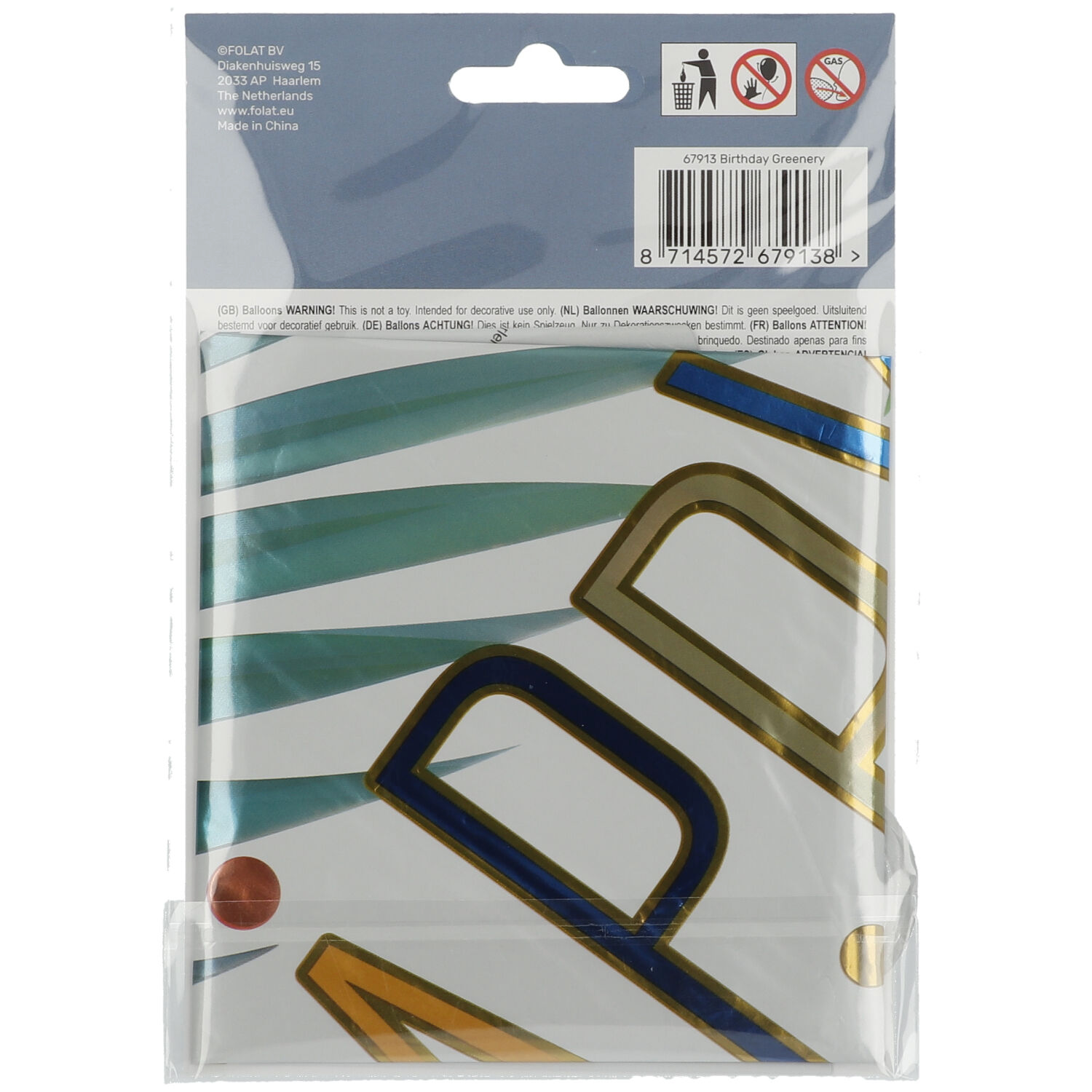 Foil Balloon Birthday Greenery Palms – 45 cm. Contents: 1 foil balloon. Colour: Multicolour. You can use this article for the following party occasion(s): Birthday and Children’s party. The foil balloon is 18 inch/45 cm. The article is made of foil.