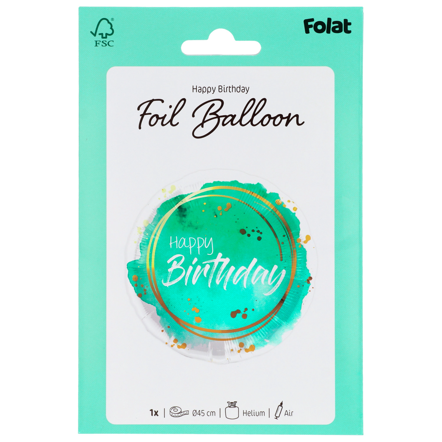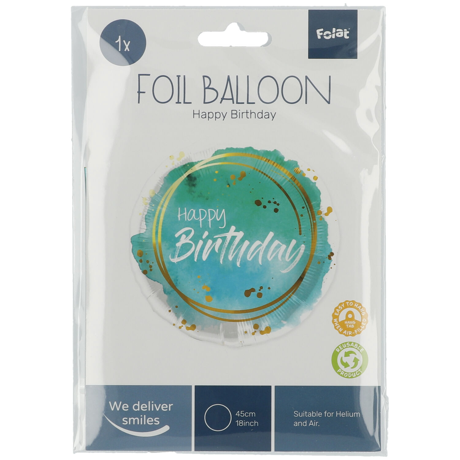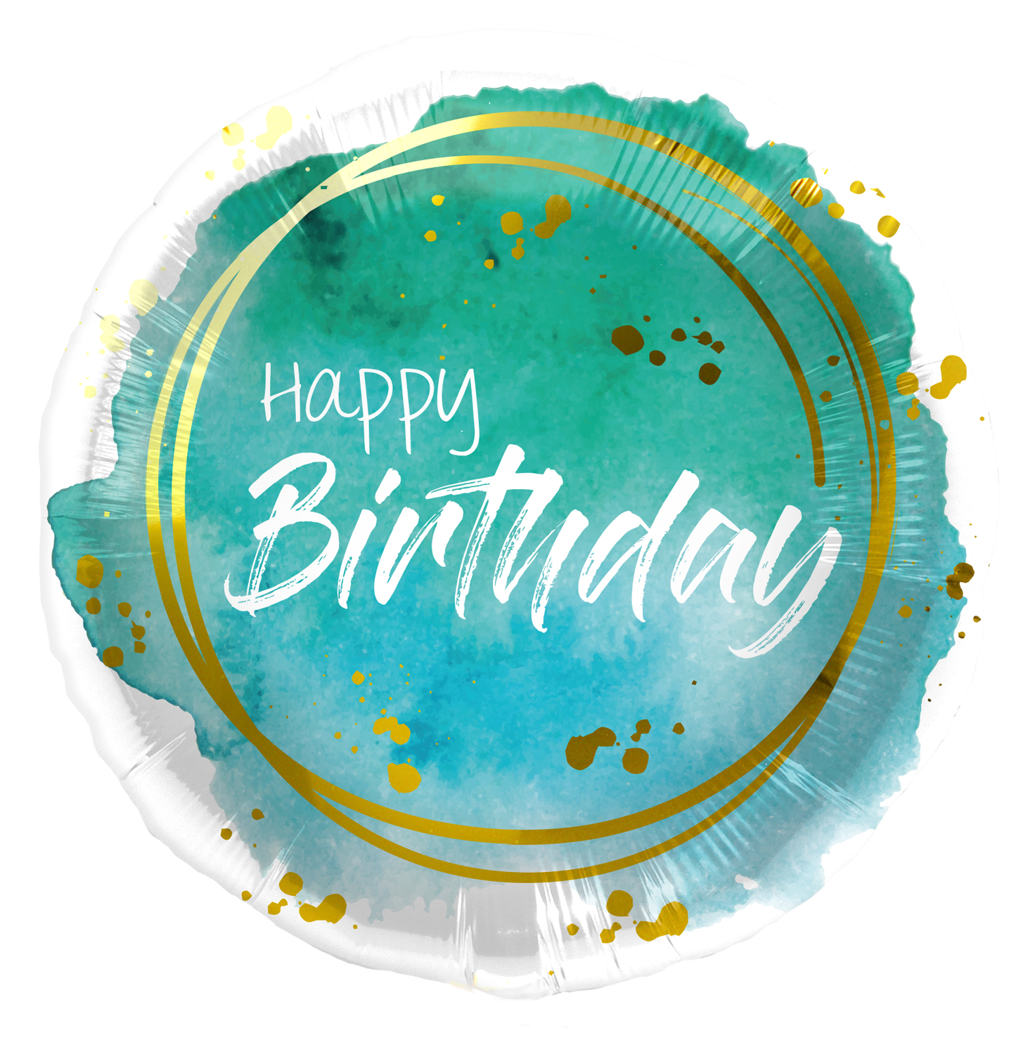Foil Balloon Birthday Watercolor Aqua – 45cm