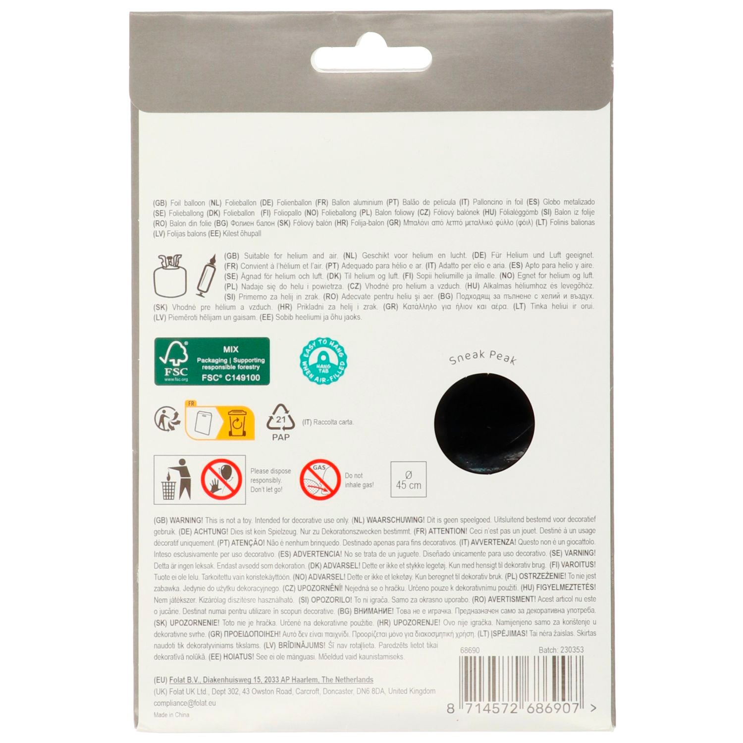 Congratulate in style! Foil Balloon – “Happy Birthday” – Crème Noir – 45 cm. Contains: 1 foil balloon. You can use this article for the following party occasion(s): Birthday. This beautiful stylish foil balloon is black and printed on both sides with the text “happy BIRTHDAY”. Suitable for birthdays all year round. The diameter is 45 cm. Suitable for helium and light. Easy to hang thanks to the ‘hanging tab’. This foil balloon is part of the Crème Noir collection from Folat. This item is made of foil.