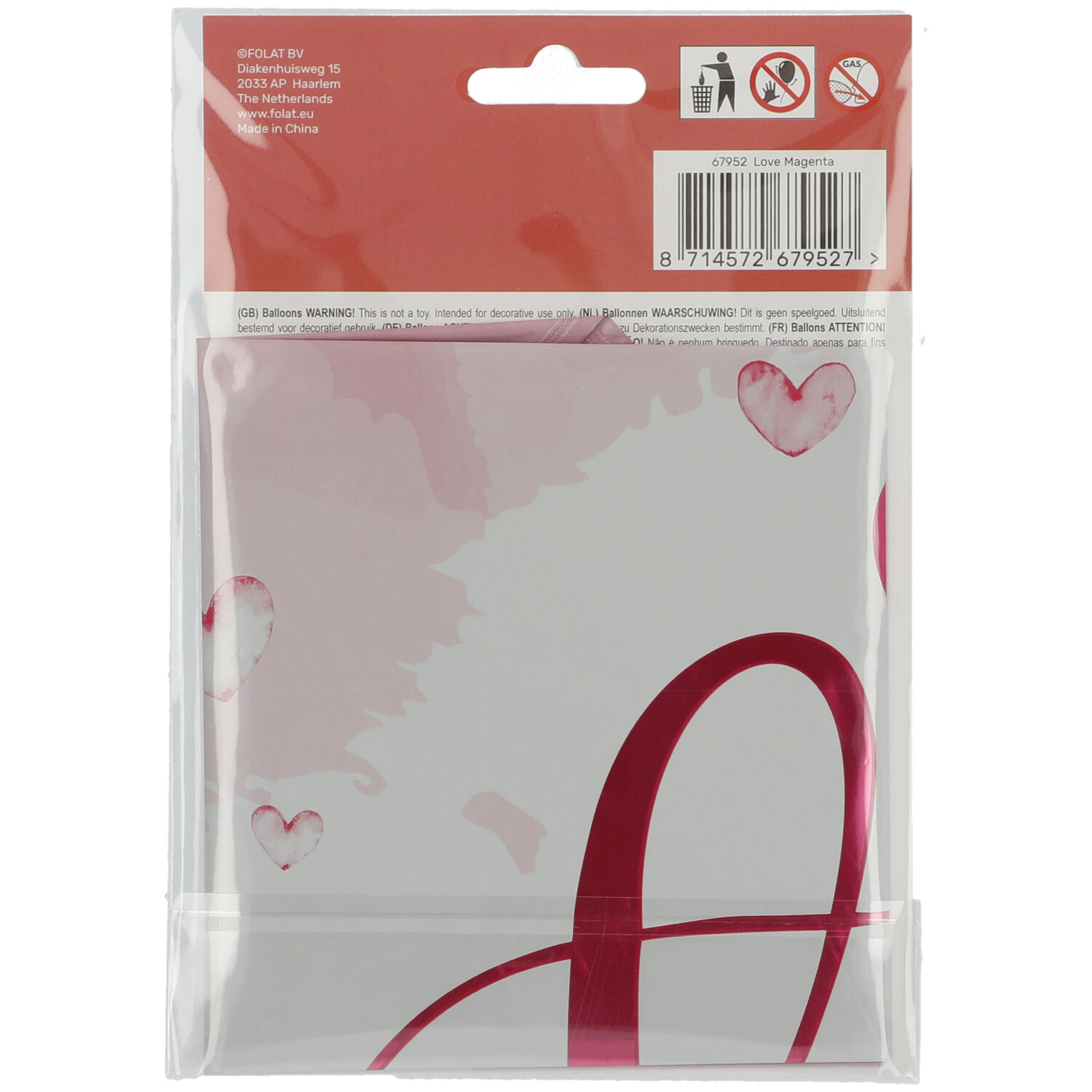 Foil Balloon Heart-shaped Love – 45 cm. Contents: 1 foil balloon. Colour: Pink. You can use this article for the following party occasion(s): Valentine’s Day. The foil balloon is 18 inch/45 cm. The article is made of foil.