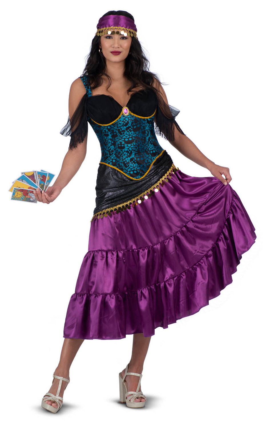 This Costume Includes: Dress, Scarf & 6 Tarot Cards