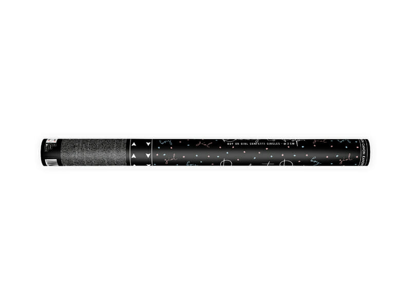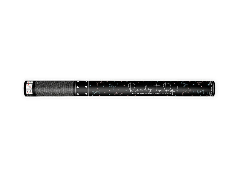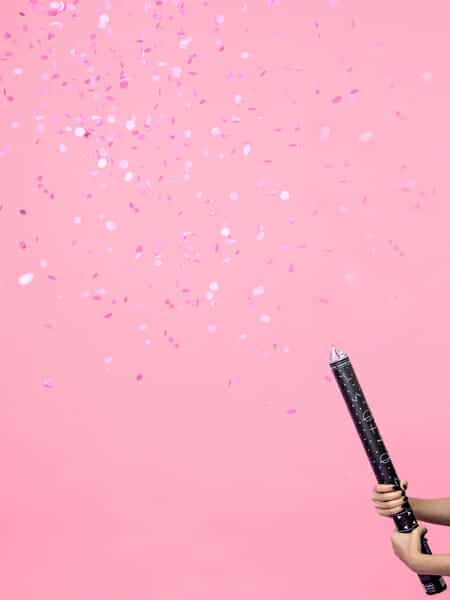 Confetti cannon shooting out pink tissue paper circles, length approx. 60cm.