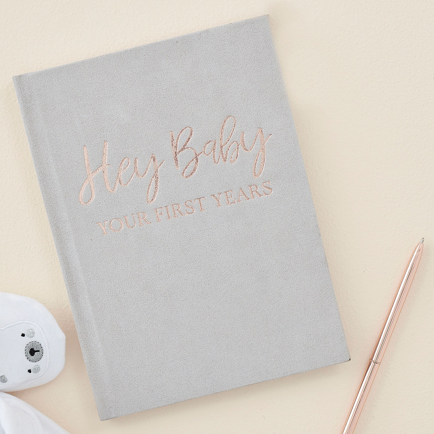 With a gorgeous grey suede cover and rose gold foiling it makes for the perfect memory book that is special enough to keep on display or treasure forever.