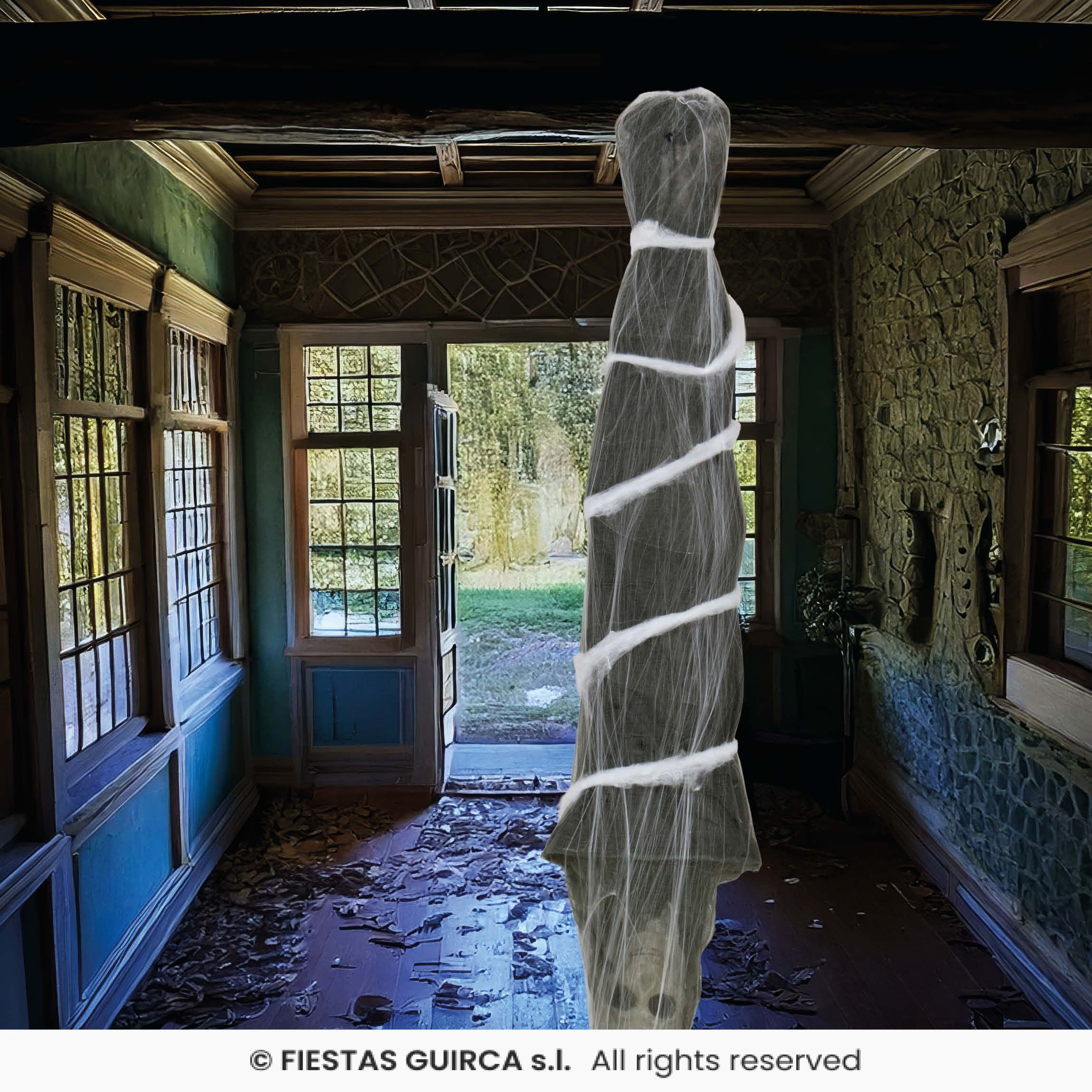 Add a chilling touch of fun to your Halloween with our Hanging Mummy Decoration! Standing at 75cm tall, this eerie mummy is perfect for hanging on doors, walls, or trees, instantly transforming any space into a spooky scene.