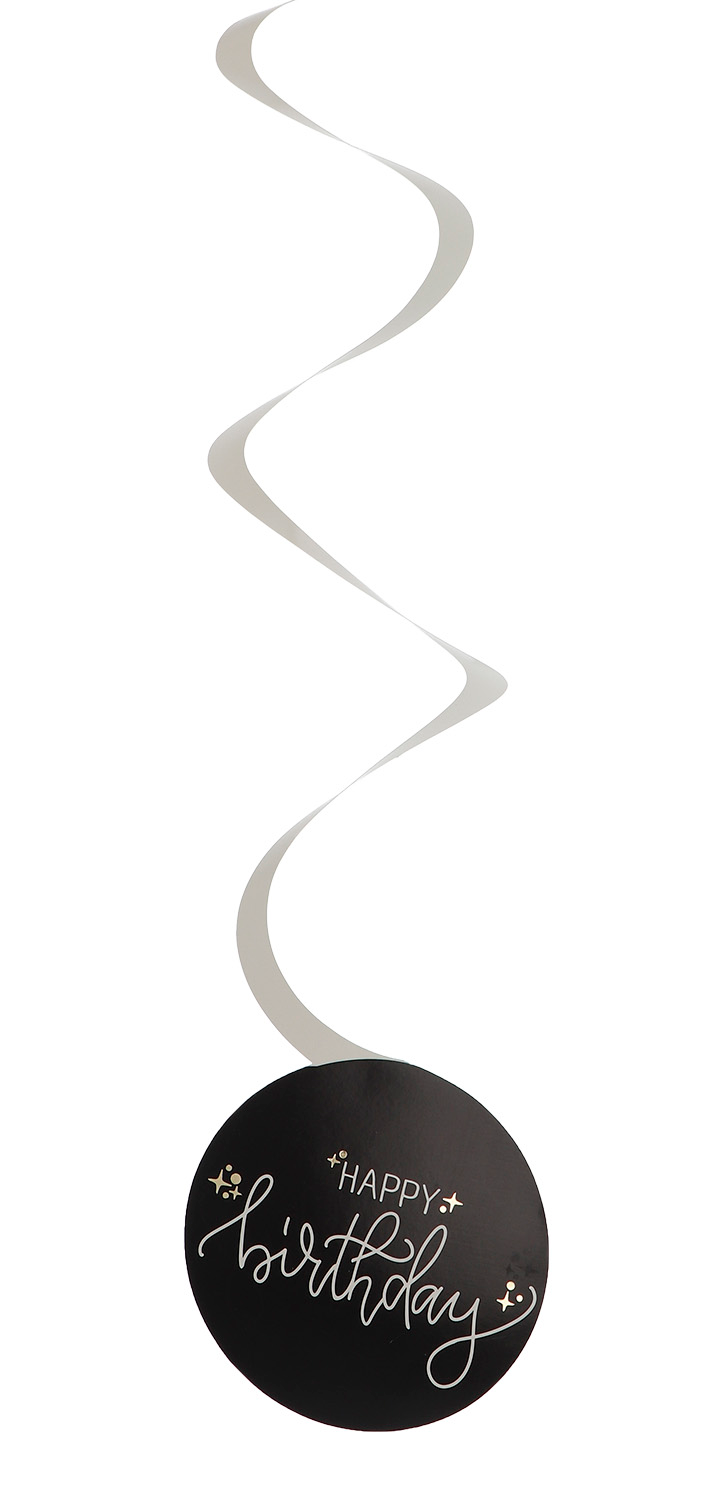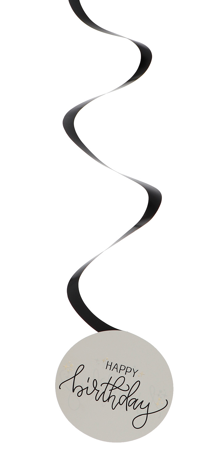 Happy Birthday Swirl Hanging Decoration Creme Noir – 6pcs