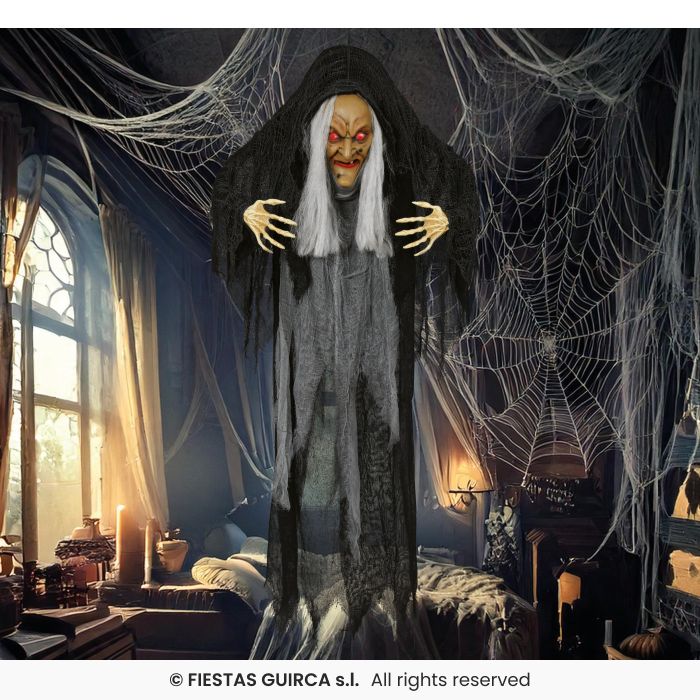 Bring spooky fun to your Halloween with our Hanging Witch Light, Sound & Movement! Standing at 120cm, this creepy witch wiggles and makes spooky sounds to scare and surprise guests. Perfect for your haunted house, porch, or party decor, it creates a chilling, magical atmosphere. Easy to hang and designed to grab attention, it’s a must-have for a memorable Halloween. Get ready for shrieks, laughs, and plenty of photo ops with this eye-catching witch! Once Upon A Time – Your One Stop Party Shop for all things spooky and fun!