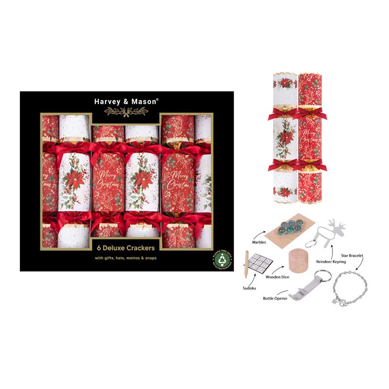 Harvey & Mason 6 Deluxe Poinsettia Crackers