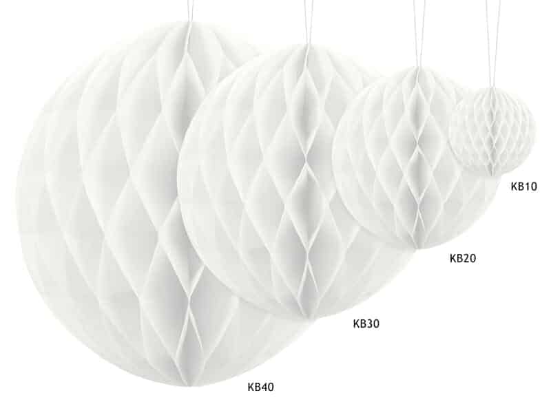 Honeycomb Ball, white, diameter approximately 30 centimeters.