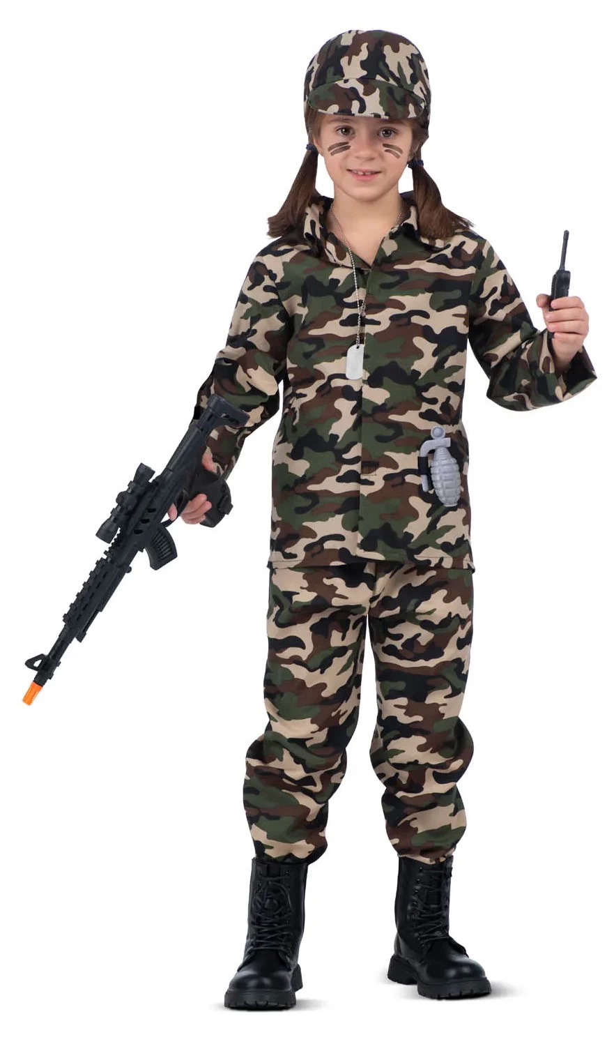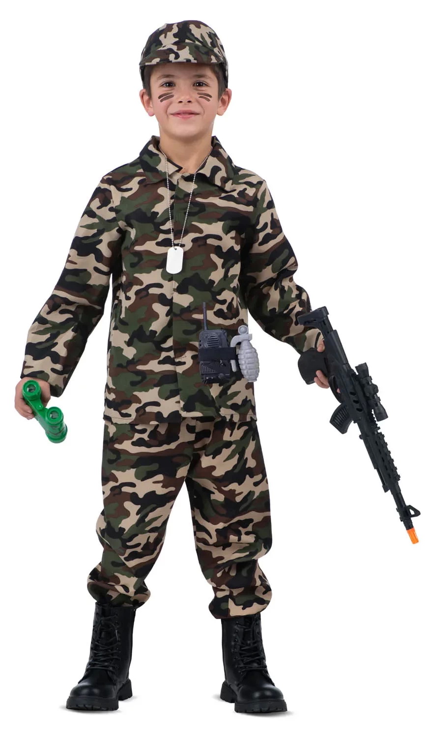 This Product Includes: Headgear, Jacket, Trousers, Walkie-Talkie, Grenade, Compass, Binoculars, Machine Gun & Dog Tag