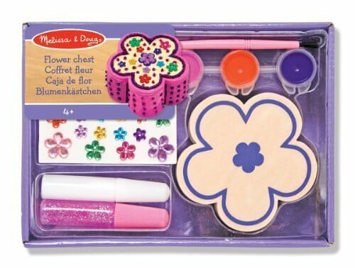 Melissa & Doug Wooden Flower Chest – Flower wooden chest, Sparkly jewels, 2 Glitter Glue, 4 Pots of Paints & Brush