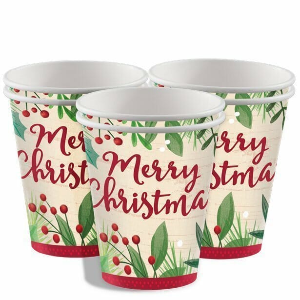 Merry Christmas Paper Cups 266ml – 8pk