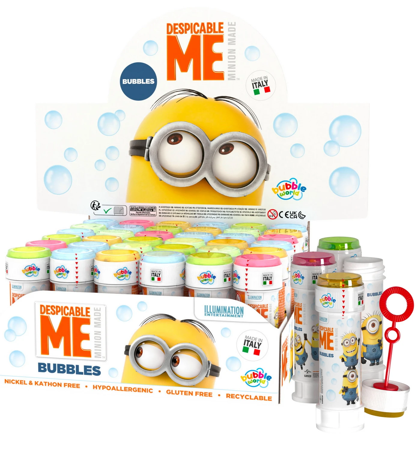 These Minion bubble tubes make ideal party favours and lucky dip prizes. Each tube comes with a wand and has a ball maze in the lid. Size: 60ml. Assorted colours and designs