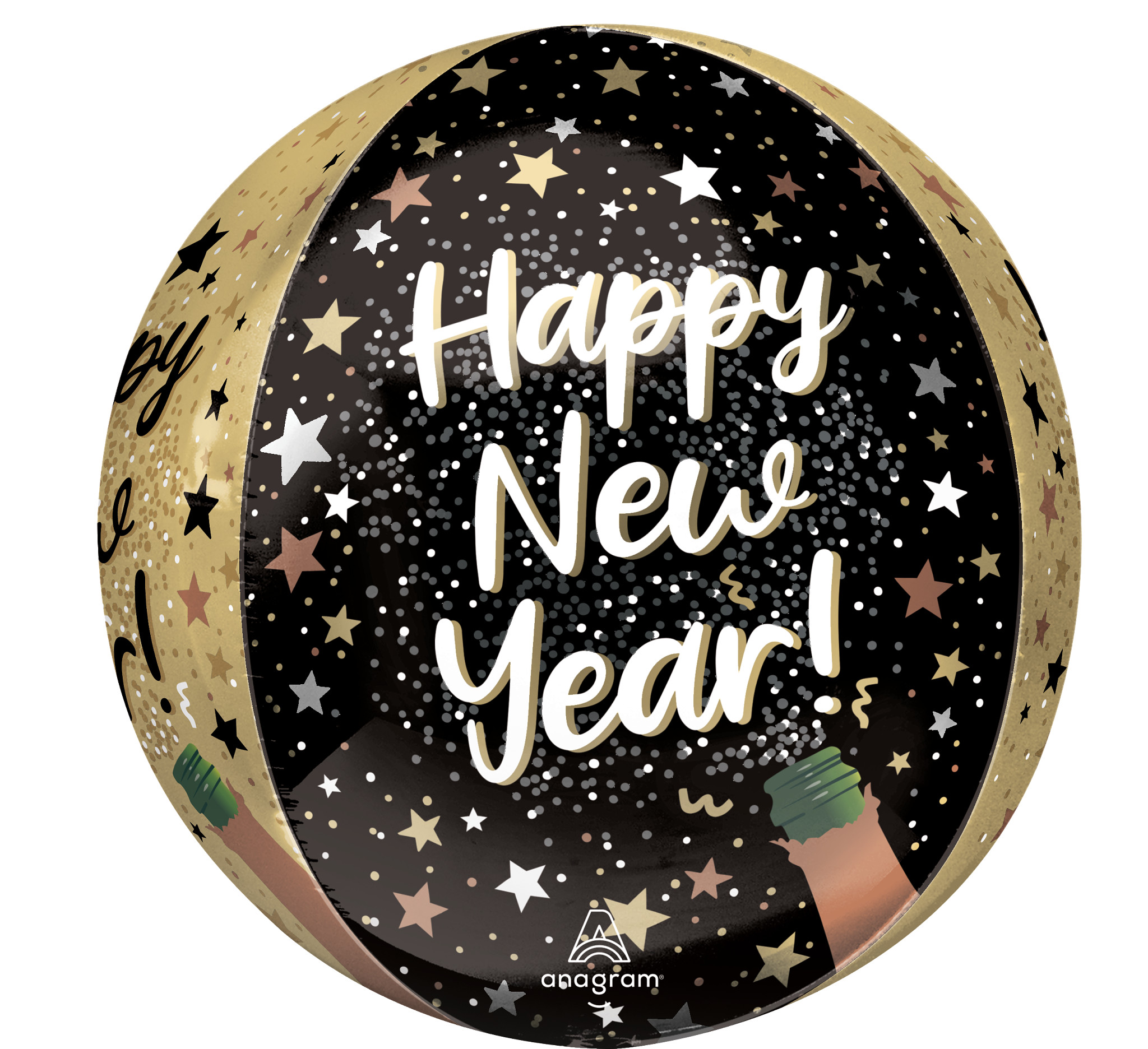 Happy New Year Orbz Natural Sparkle Foil Balloon 38cm x 40cm
