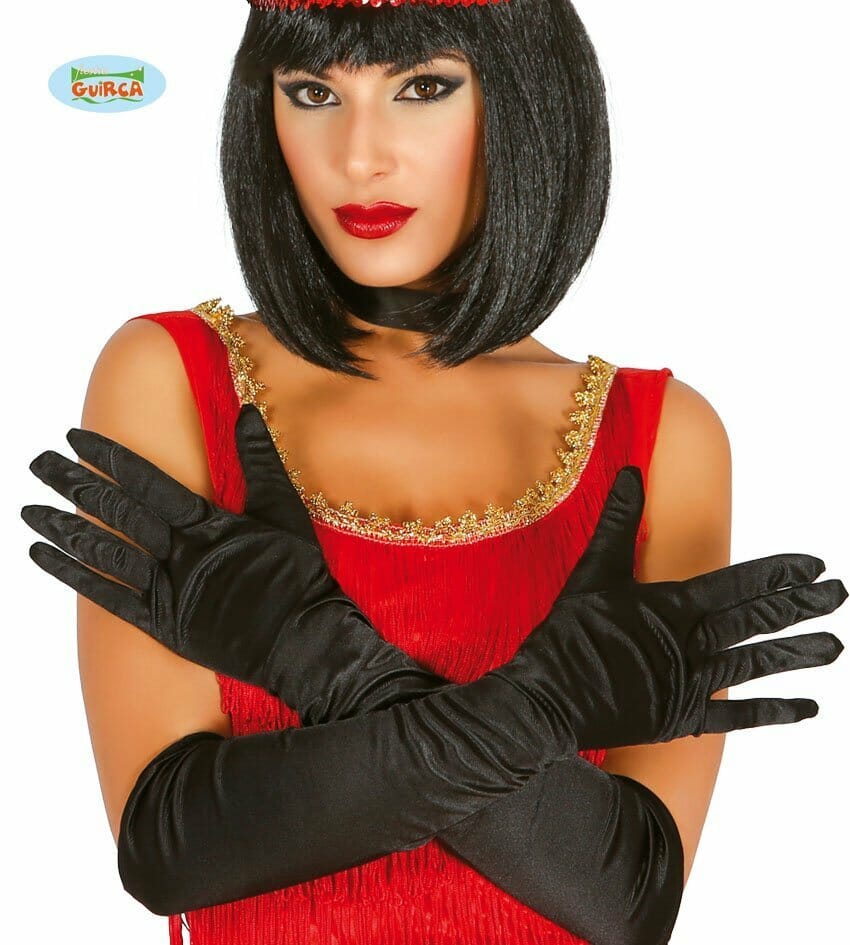 Pair Of Black Satin Gloves 51cm