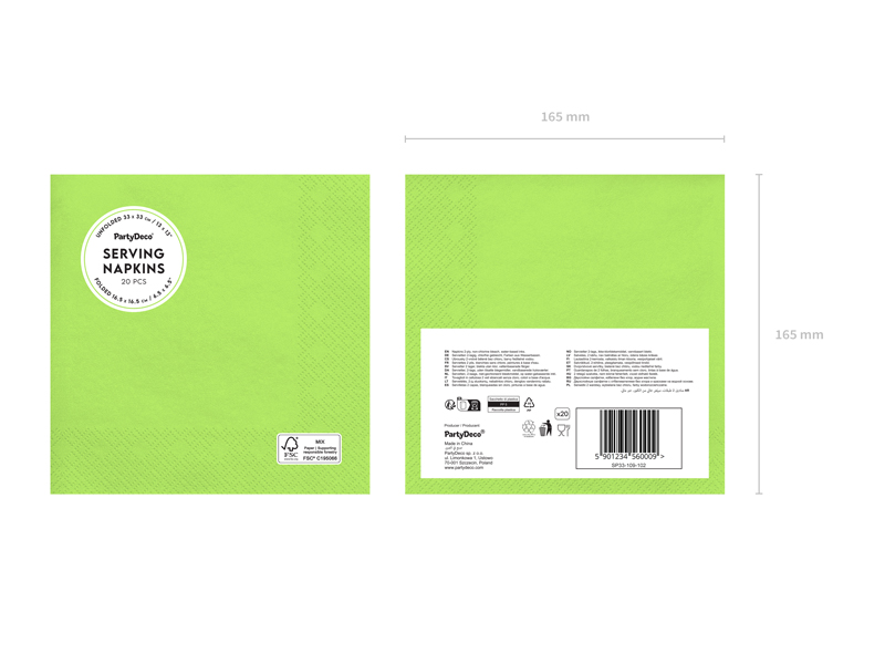 Paper napkins in light green color. Dimensions unfolded approx. 33 x 33 cm, folded approx. 16.5 x 16.5 cm. (1 pkt / 20 pc.)