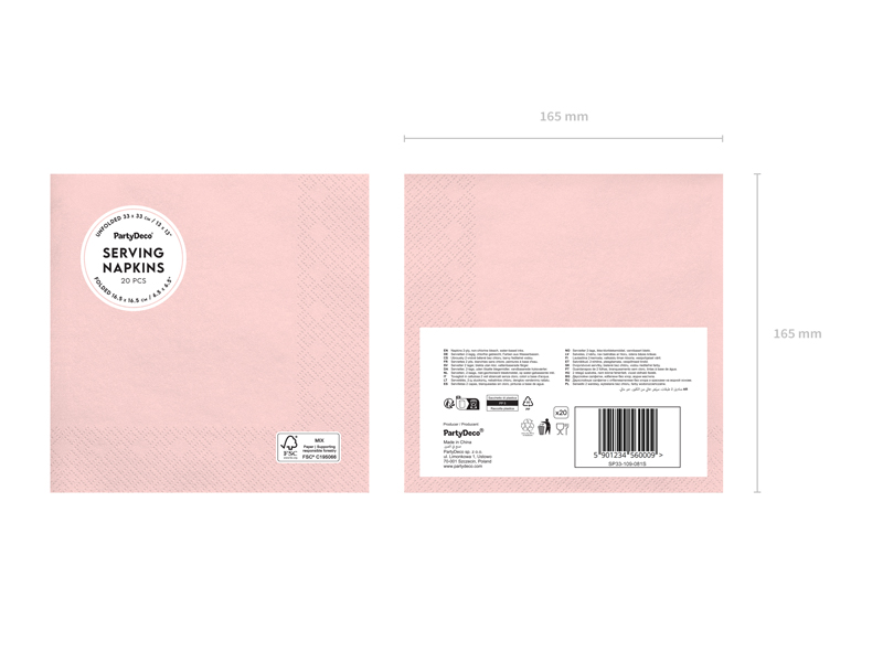 Paper napkins in light pink color. Dimensions unfolded approx. 33 x 33 cm, folded approx. 16.5 x 16.5 cm. (1 pkt / 20 pc.)