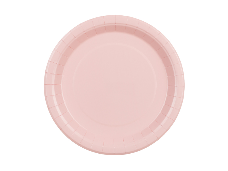 Round paper plates in light pink color, diameter approx. 23 cm. (1 pkt / 6 pc.)