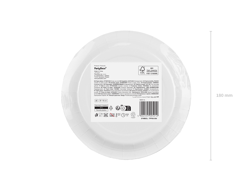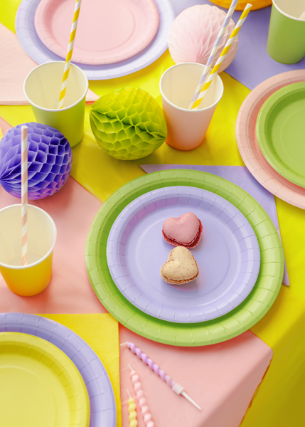 Round paper plates in yellow color, diameter approx. 18 cm. (1 pkt / 6 pc.)