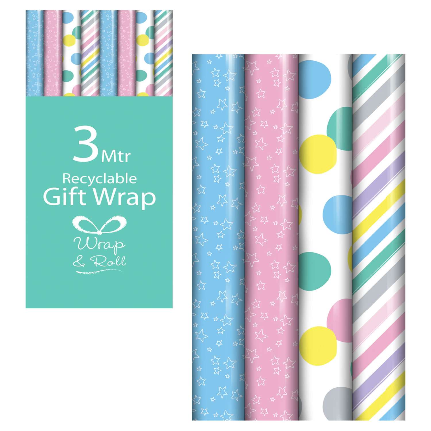 Pastel Wrapping Paper – 3 Meters (Assorted Designs)
