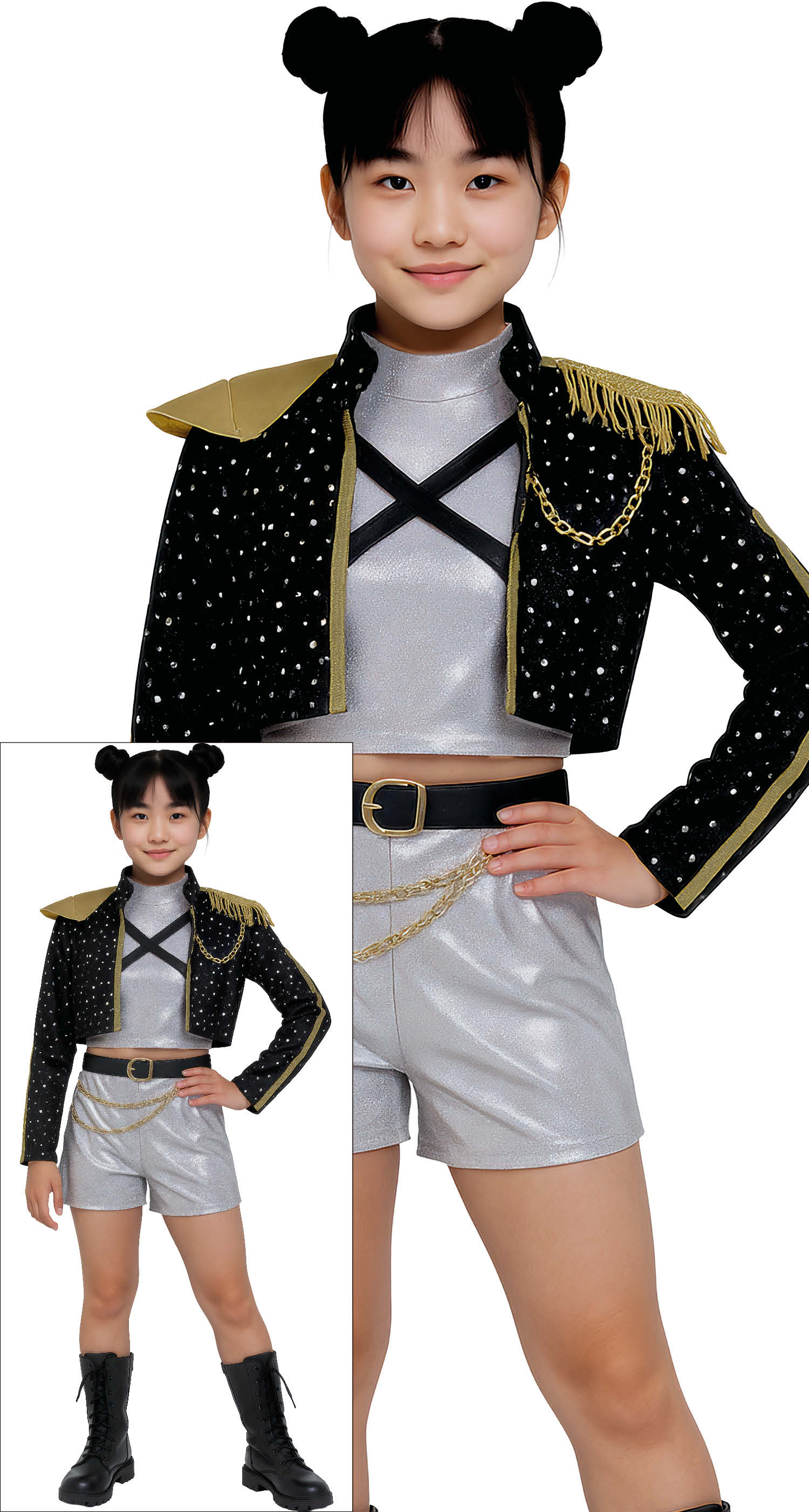 This Kpop Demon Hunters Rumi Mira Zoey Costume Includes: Jacket, Shirt, Shorts With Belt