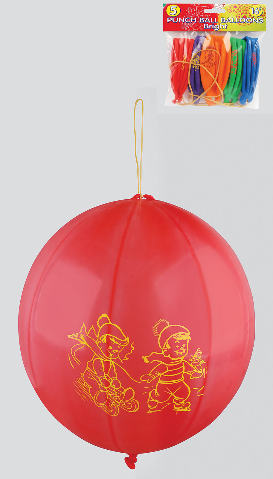 Punch Ball Bright Decoration Balloons 16″ (Assorted Colors / Prints) – 5pk