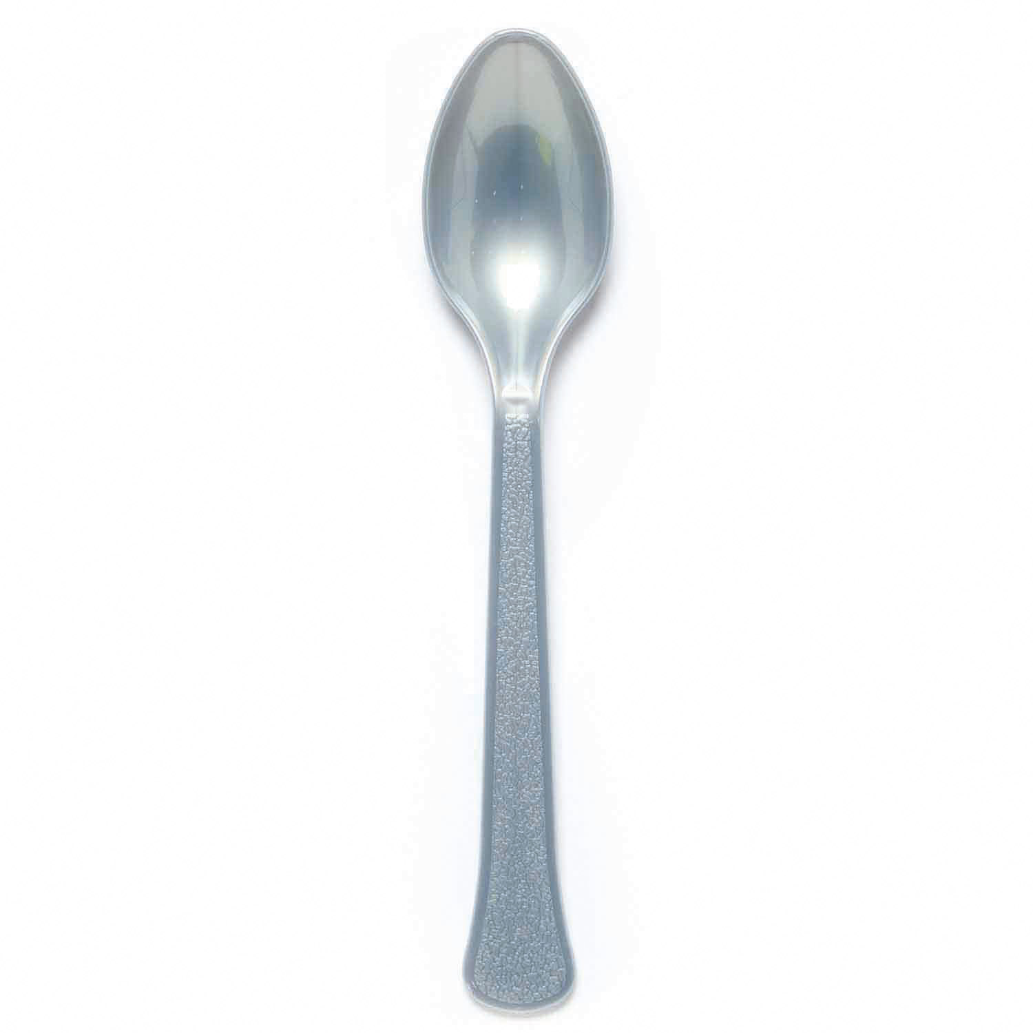 Solid Color Party Plastic Spoons Silver (Graphite) – 24pk
