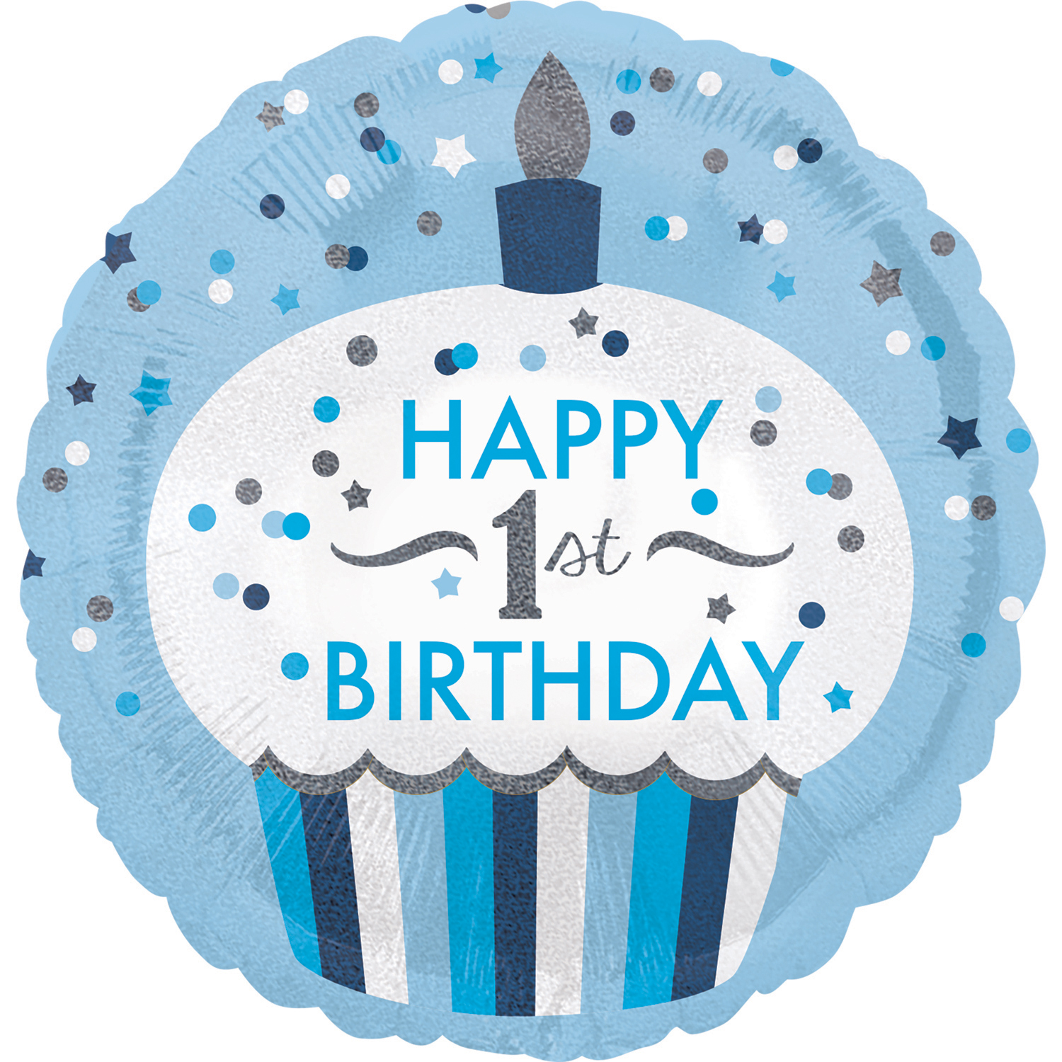 Standard Holographic 1st Birthday Cupcake Boy Foil Balloon S55 Pack- Aged 43 cm