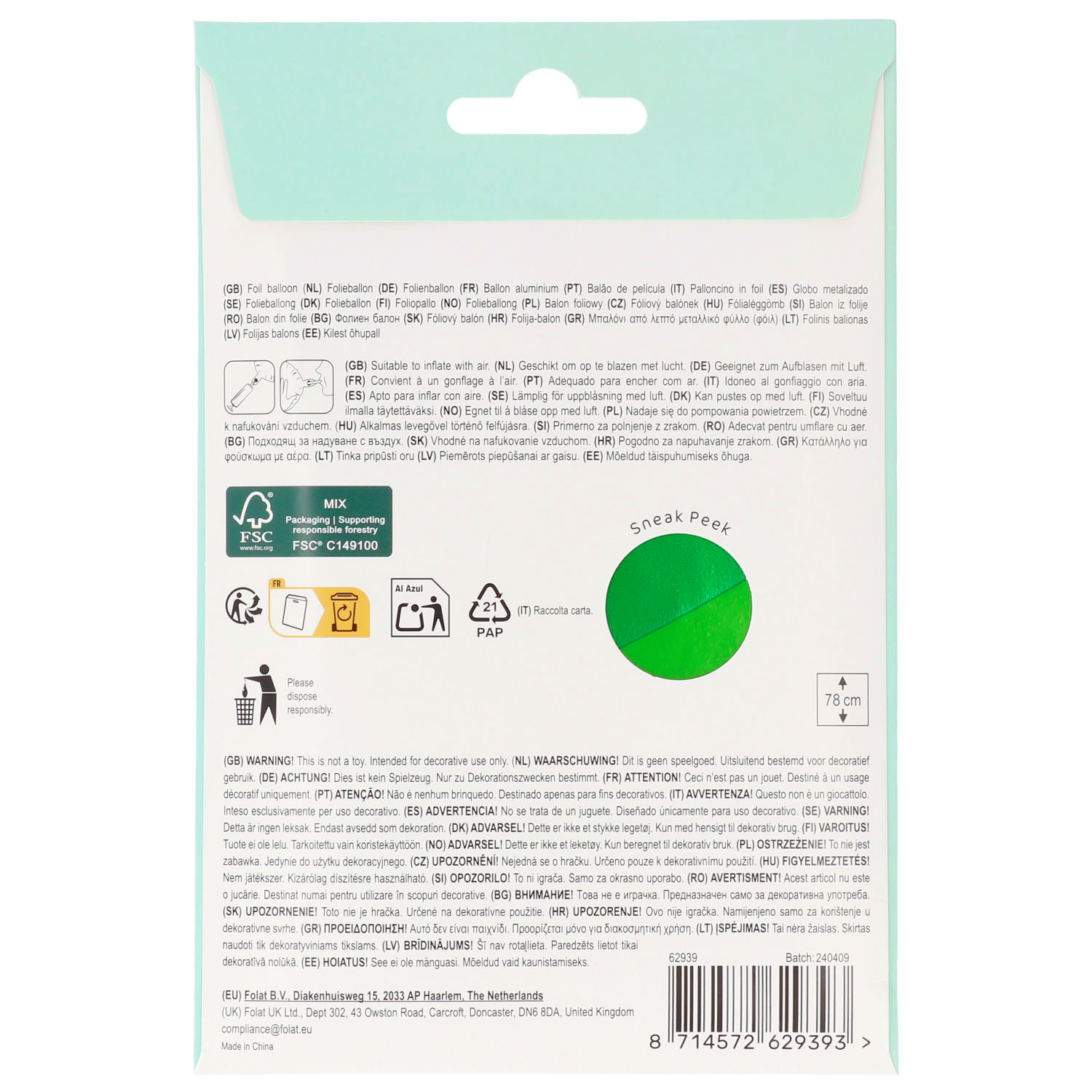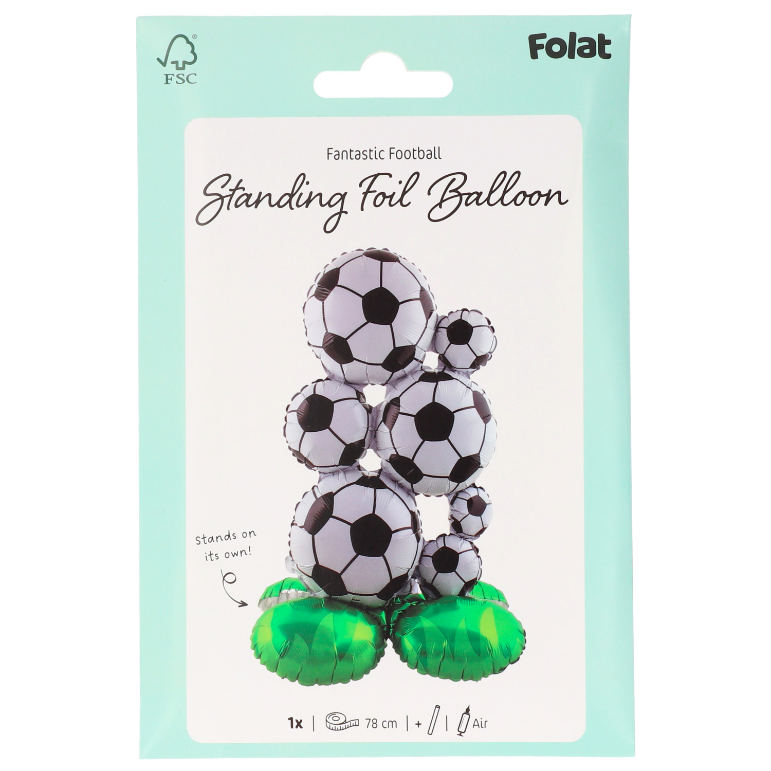 It’s football party! Standing Foil Balloon – Footballs – 53 x 77 cm. Contains: 1 standing foil balloon. You can use this article for the following party occasion(s): Birthday, Children’s party, Football. Always score with this standing foil balloon in the shape of a stack of footballs. The foil balloon is 53 x 77 cm and can be filled with air using the included straw. This standing foil balloon is part of the Fantastic Football collection by Folat. This item is made of foil.