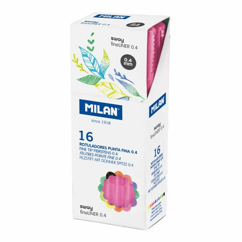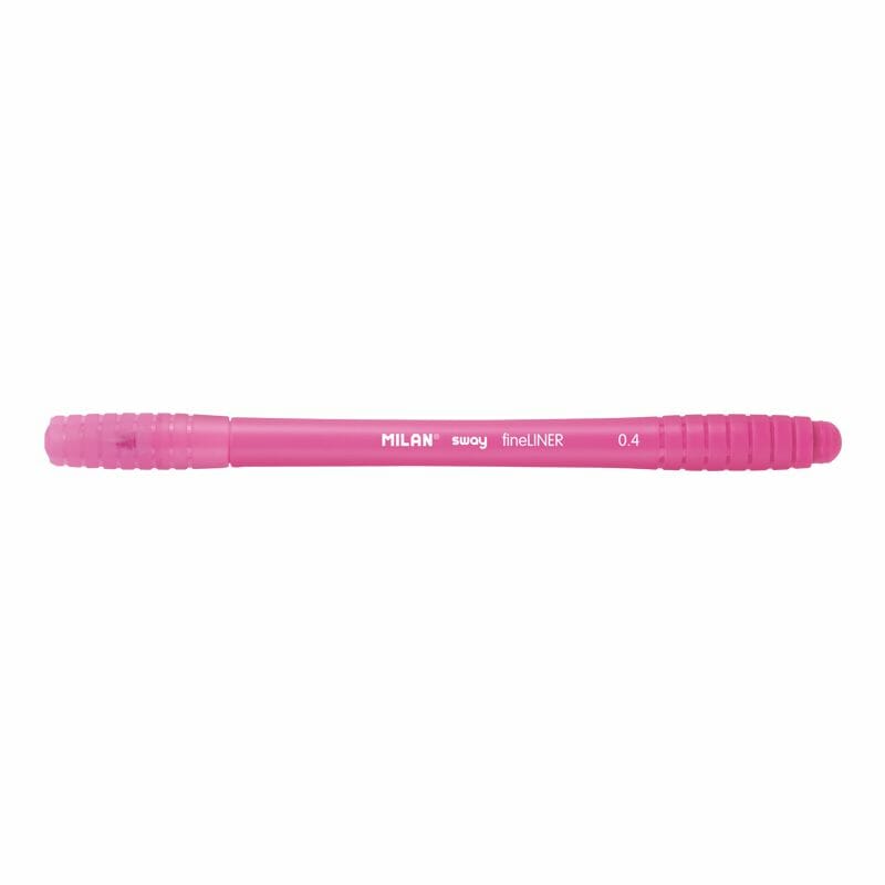 Fine tip fibrepens SWAY fineliner 0.4 mm pink colour. Fiber tip with metal support. Barrel of the same color as ink (water based). SWAY design with ergonomic round shape. The cap can be attached to the pen’s end. Original design created by MILAN’s ownR&D department.