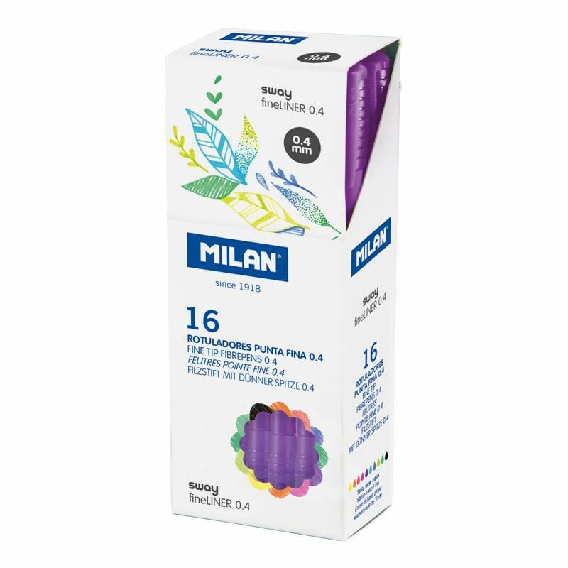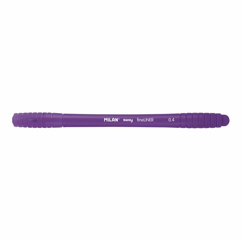 Fine tip fibrepens SWAY fineliner 0.4 mm lilac colour. Fiber tip with metal support. Barrel of the same color as ink (water based). SWAY designwith ergonomic round shape. The cap can be attached to the pen’s end. Original design created by MILAN’s ownR&D department.