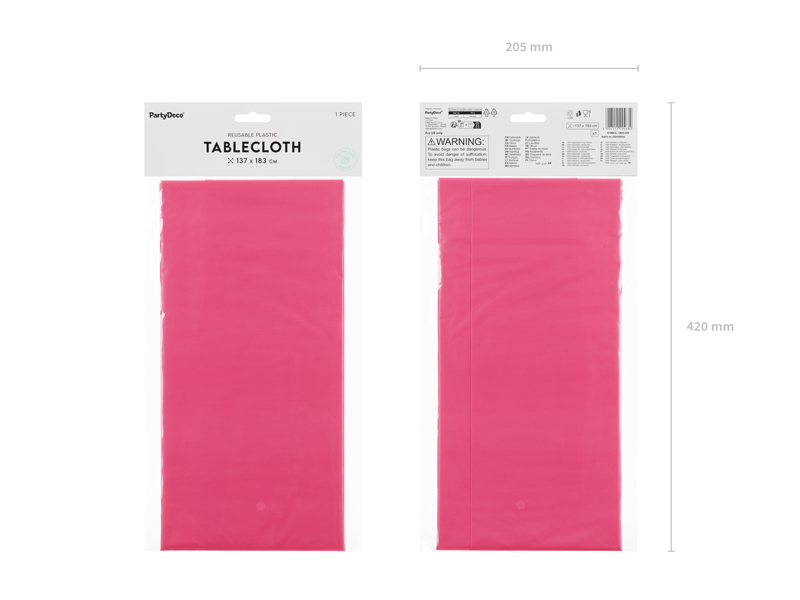 Tablecloth in dark pink color. Size approx. 137 x 183 cm. Made of synthetic material.