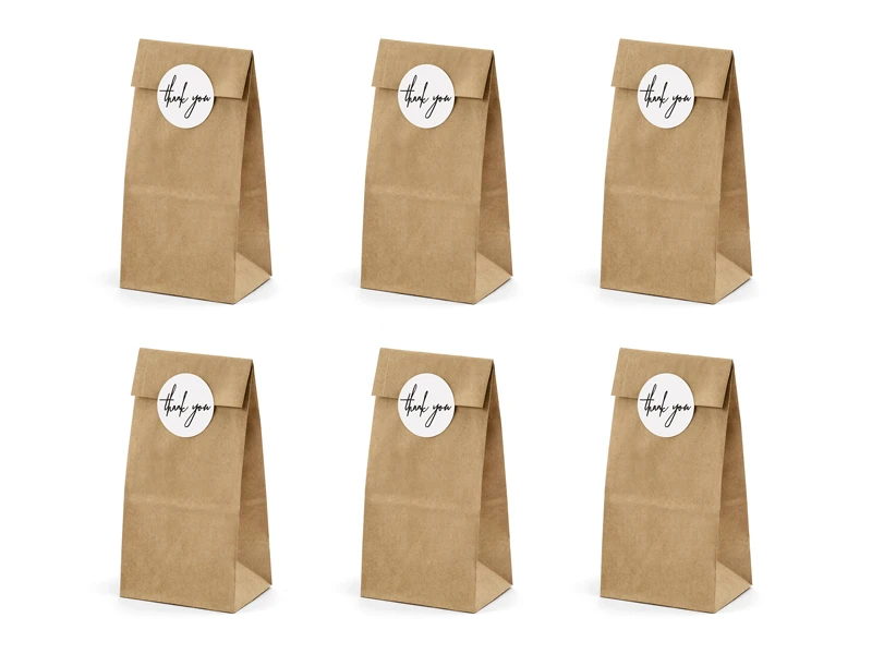Treat bags, made of kraft paper, with 6 white stickers Thank you, sizes after assembling approx. 8x18x6 cm. (1 pkt / 6 pc.)