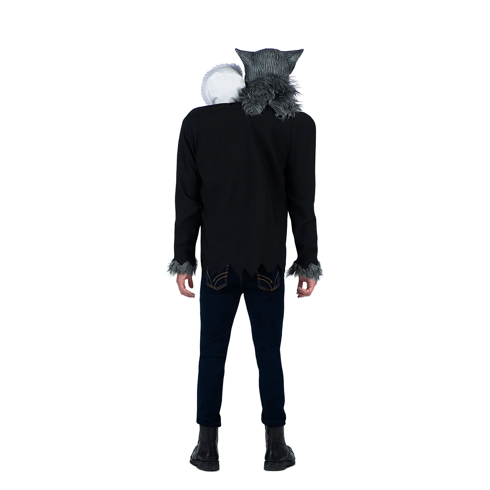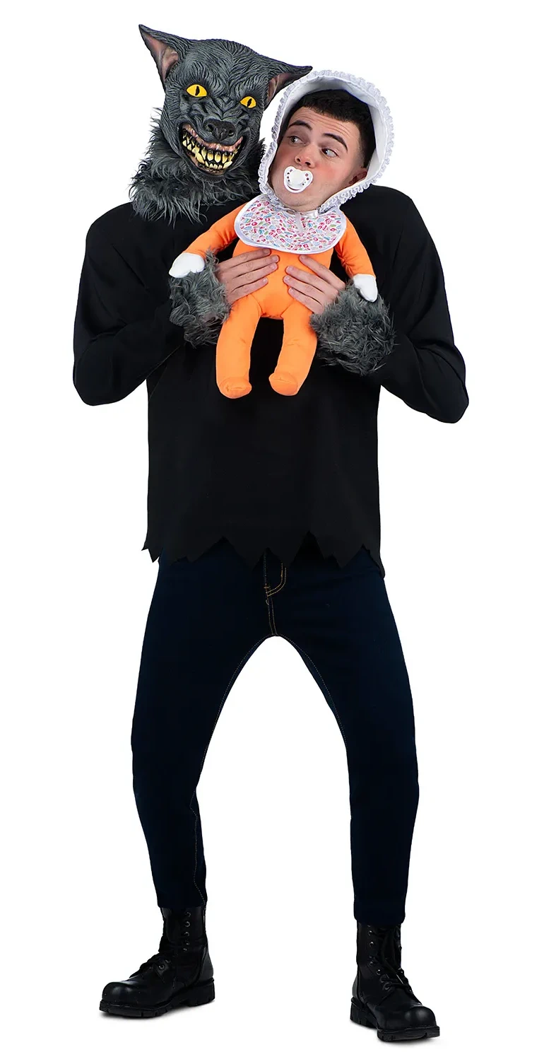 The costume consists of a black shirt that has fur at the end of the sleeves as if it were that of a ferocious wolf. It also has a structure for the wolf head and the baby’s body on the shirt and don’t worry, the baby’s head will be yours so the costume will be complete and ready for you to have a good time on Halloween